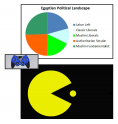 I know it’s just an artefact of Juan Cole choosing a very light blue for “Classic Liberals” in his blog post on Mursi and the Brotherhood in a Pluralist Egypt — but his image of the Egyptian political landscape irresistably conjured up Pac-Man — and viewed in the light of Mursi‘s victory today, Pac-Mac begins to look a lot like a westernized, stylized portrayal of the star and crescent…