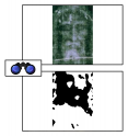 The two likenesses above are both of interest as possible “likenesses of Christ” — the top one taken from the Shroud of Turin, the lower one allegedly photographed in the snow, perhaps in China. The image on the Shroud might be a sort of “photographic negative” of the actual face of man a crucified two thousand years ago — and scientific techniques may or may not offer us evidence as to that likelihood. The other image — supposedly of the face of the same Christ, this time seen and recognized by a photographer in shadows on snow — how does one check the provenance of an image like that?