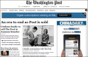 Okay, okay, Jeff Bezos has bought the Washington Post. But what intrigues me about this front page of today’s digital edition as it appeared on my screen this morning was the way a color photo of Bezos sneaks in (left) below a larger black and while photo of Katharine Graham (center) — while an ad for the China Daily (right) takes up a third of the real estate (right), to be read, mark you, on Bezos’ own Kindle.