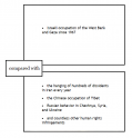 For instance, the Israelis have established “facts on the rgound” in the form of both settlers and their sccompanying schools, synagogues, etc within the Palestinian und, with military enforcement, while the Chinese appear similarly to have established “facts on the ground” in Tibetan territor in the form of both settlers and their institutions, militarily enforced.