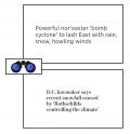 We don’t need the details of the two articles, or of other coverage such as the New Yorker’s Bomb Cyclones, Nor’easters, and the Messy Relationship Between Weather and Climate — the top panel headline deals with the weather-weather, the regular day to day no need to look further weather, but the lower panel headline lets in alternate, nay Biblical, spiritual explanations — and with that freedom I’ll fly to a consideration of atmosphere and atmosphere — the one measured by the barometer, the other an intangible presence in a room —