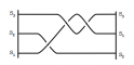 Noting the correspondence between juggling — a circus-performer’s art — and braiding — not quite knitting, not quite knotting, and don’t those two words fit well together — an art associated with the decoration of hair and ribbons — I wondered whether there might not be a musical analog in counterpoint, and posted my inquiry on Twitter using this diagram of braiding: