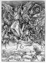 Durer‘s angels of the Apocalypse, likewise, are militant angels, though like ourselves (Ephesians 6.12) they: