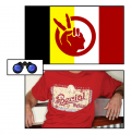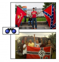 while by way of contrast, the tee worn by the confederate-and-marine-flags chap is a logo rather than a flag — it’s a Southern Thread Men’s Special Deluxe Art Tee to be exact. As the ad says: